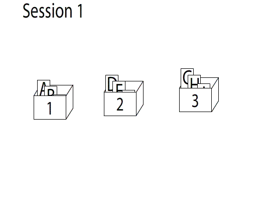 Cum funcţionează fişele de învăţare de tip flash cards? E simplu: acestea sunt nişte foi de hârtie care conţin o întrebare pe o parte a foii şi răspunsul pe verso. Folosirea acestor fişe de învăţare permite celor ce doresc să studieze să combine cele două metode de maximă eficienţă: testarea şi repetarea. Atunci când persoana care învaţă ştie răspunsul la întrebarea de pe o fişă de învăţare, respectiva fişă este mutată într-o cutie ce cuprinde fişele care vor fi studiate mai rar (săgeata verde). Atunci când, în schimb, răspunsul la întrebare nu este cunoscut, fişa va fi mutată într-o cutie ce conţine fişele care vor fi studiate mai des (săgeata roşie).