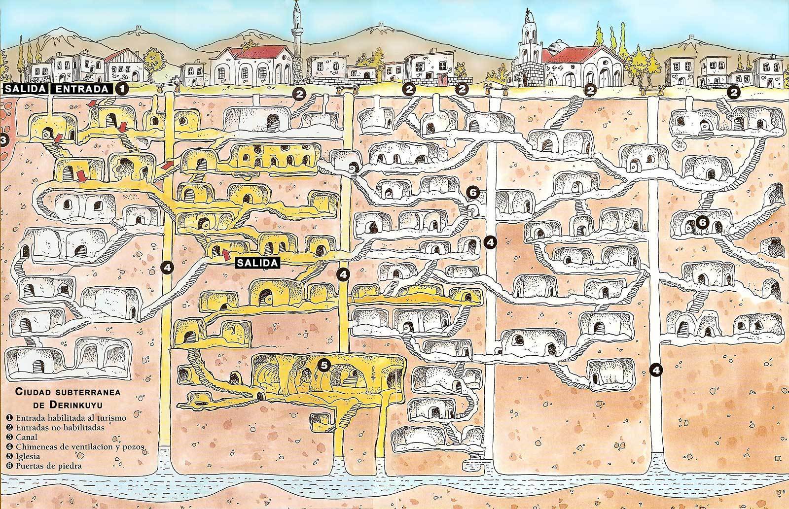În cele din urmă arheologii şi speologii au descoperit că în spatele peretelui se ascundea un veritabil oraş subteran, ce se întindea cel puţin 18 etaje sub pământ până la o adâncime de aproximativ 85 de metri, şi putea găzdui aproximativ 30.000 de oameni. De altfel, specialiştii nu au explorat nici astăzi în totalitate oraşul subteran din Derinkuyu.