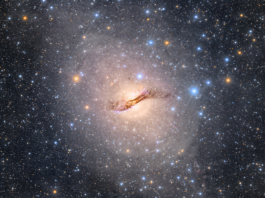 Pentru a crea această imagine cu galaxia Centaurus A, el lucrat 120 de ore, timp de 43 de nopţi. Galaxia în sine, este „vraişte”. Ea a suferit mai multe coliziuni cu mai multa galaxii, lucru care a creat un haos masiv. Banda de culoare închisă din centrul imaginii, cochilia imensă din jurul acesteia şi jeturile de gaz abia vizibile care ies din gaura neagră ce se află în centrul galaxiei (din stânga sus şi dreapta jos), sunt urmări ale trecutului violent.