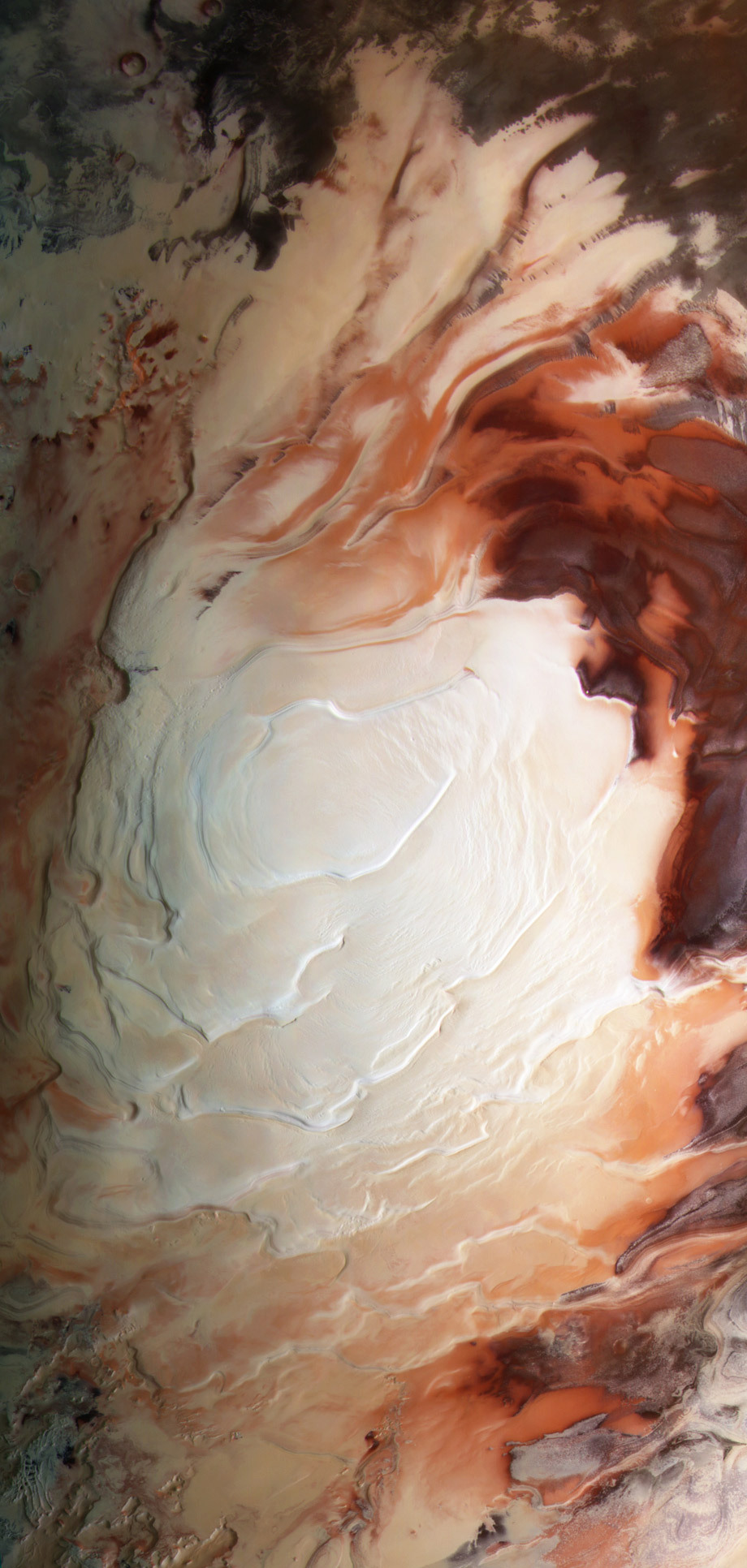 În ultimii 10 ani, Sonda Mars Express a tot orbitat cea de-a patra planetă de la Soare. Bill Dunford a profitat de multitudinea de noi informaţii despre Planeta Roşie dând naştere acestui mozaic uimitor care reprezintă polul sud al planetei.