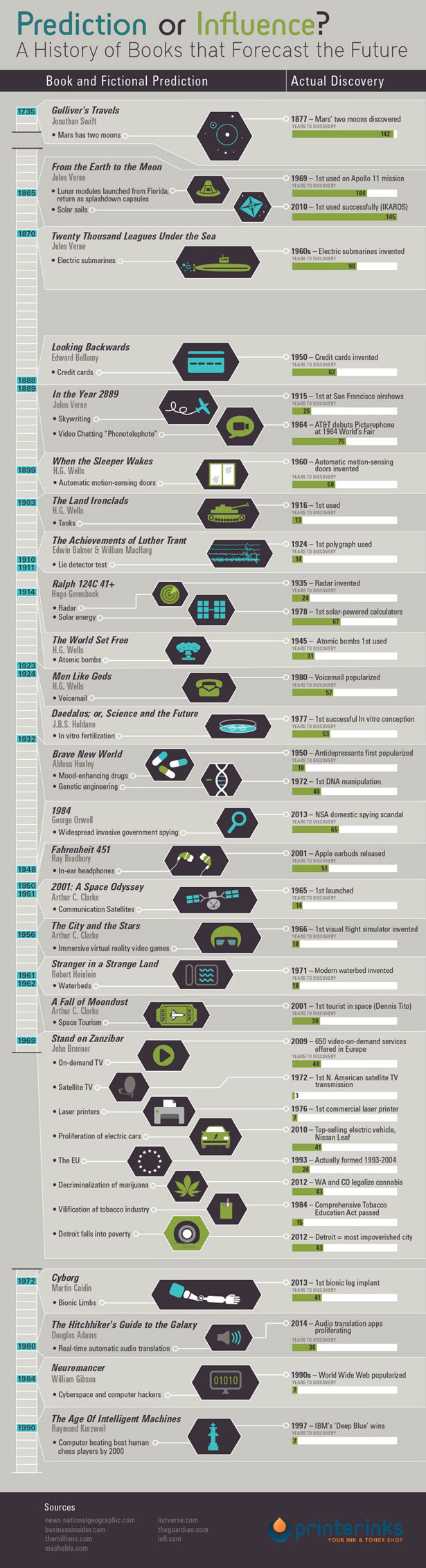 În acest infografic puteţi vedea şi alte exemple de cărţi care au prezis apariţia unor tehnologii.