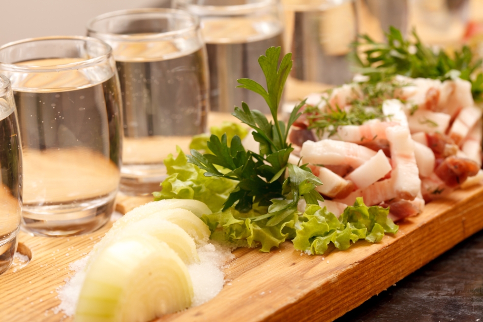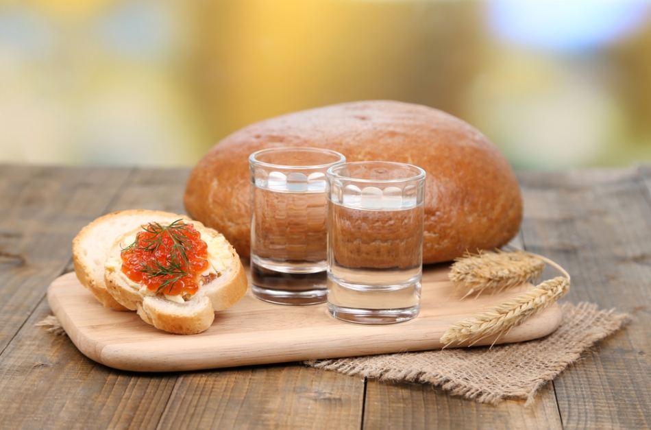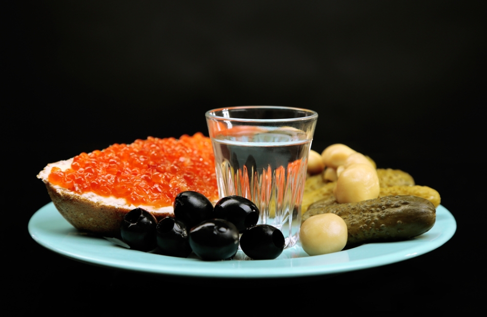 În Rusia, vodca nu se bea niciodată pe stomacul gol, ci întotdeauna însoţeşte o serie de aperitive locale numite „zakuski”, aperitive care includ peşte sărat şi uscat, murături, pâine integrală şi icre negre sau roşii. Astfel de aperitive grele şi grase nu sunt deloc întâmplătoare, ci au ca rol neutralizarea parţială a conţinutului mare de alcool din vodcă.