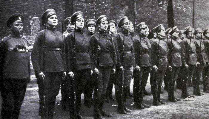 În perioada apogeului Primului Război Mondial, ruşii le-au permis voluntarelor, precum Maria Bochkareva, să pună bazele primului batalion cuprins în totalitate din femei.