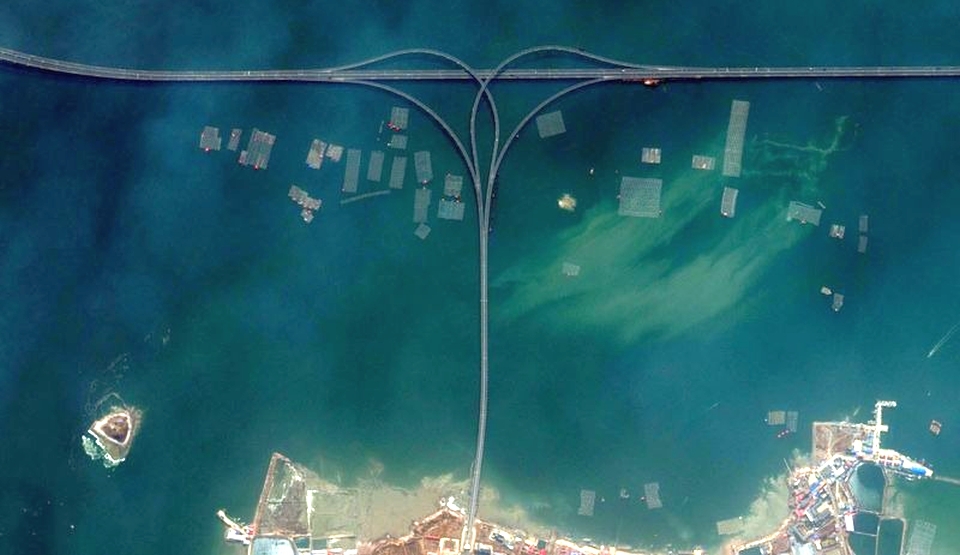 Imaginea podului Jiaozhou Bay din China. Sursa foto: Dailyoverview