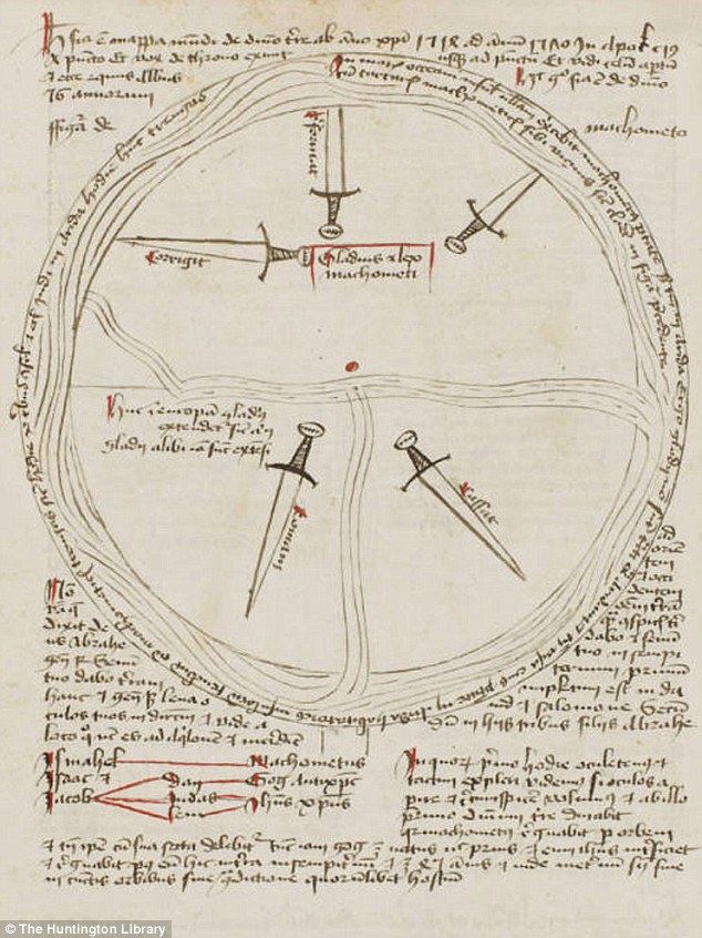 O altă hartă manuscris descrie „Sabia Islamului” cucerind în primul rând Europa şi făcându-şi drum spre restul lumii. Cinci săbii sunt plasate în interiorul cercului, care este Pământul, iar fiecare dintre ele este etichetată: „Aceasta corectează”, ” Aceasta reformează”, ” Aceasta sfărâmă” şi „La Roma”. Cea de-a cincea sabie este lăsată goală. Textul care înconjoară imaginea descrie ce se va întâmpla cu lumea între anii 1515-1570.
