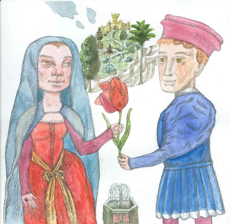 Sfânta Miercuri şi Sfânta Vineri sunt două personaje pozitive recurente în basmele româneşti. Ele oferă adăpost, de-ale gurii sau sfaturi înţelepte. Practică magia albă, astfel încât stau izolate de lume, sunt zâne rurale. Sfânta Miercuri este un personaj din mitologia românească. Este înfăţişată ca o bătrână slabă, care are puteri miraculoase. Îngrijeşte, hrăneşte animalele sălbatice şi totodată ajută pe călătorii sau drumeţii rătăciţi. Ca şi Sfânta Duminică posedă un tezaur de obiecte miraculoase pe care le dăruieşte în împrejurări speciale: o furcă de aur care toarce singură, mere de aur, perii care aruncate îndărăt se preschimbă în păduri. Scena din ilustraţie este din „Frumoasa Lumii” de Mihai Eminescu. Ilustrator: Mihaela Paraschivu.