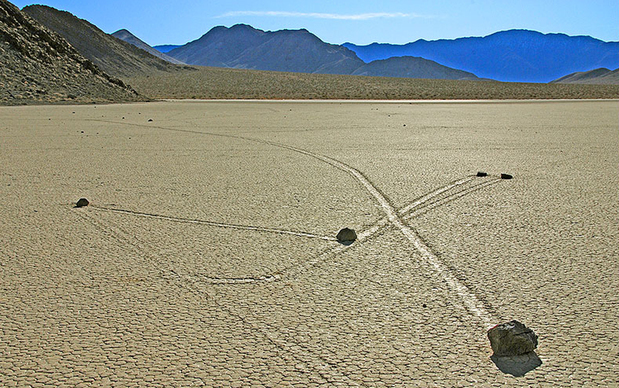 Într-o zonă izolată din Parcul Naţional Valea Morţii (Death Valley National Park) din California, mai multe roci bizare, cunoscute sub numele de „călătoare”, se deplasează pe suprafeţe plane, fără ajutorul gravitaţiei. Oamenii şi-au dat seama de existenţa acestor deplasări misterioase întrucât rocile – unele dintre ele cântăresc peste 300 de kilograme – lasă pe sol urme lungi şi adânci. Însă nimeni nu reuşea să explice fenomenul şi să identifice cu exactitate motivul care le făcea pe acele roci să se deplaseze.
