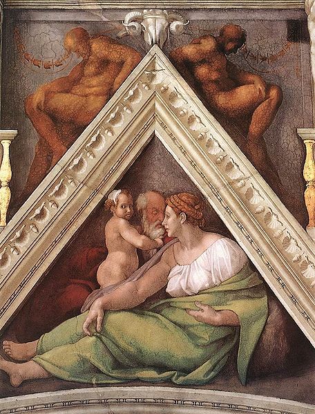 Pe pandantivele tavanului Capelei sunt redaţi 12 bărbaţi şi femei ce prevestesc venirea lui Iisus. Reprezentările sunt flancate de 8 triunghiuri, în care apar membri unor famili purtând îmbrăcăminte din perioada biblică. De Campos susţine că personajele feminine pictate de Michelangelo în centrul acestor triunghiuri sugerează faptul că femeile sunt cele care menţin vie credinţa şi descendenţa familiilor.