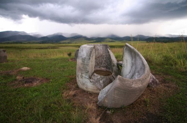 La aproximativ 15 km distanţă faţă de Parcul Naţional Lore Lindu din insula indoneziană Sulawesi, într-o zonă cunoscută sub numele de ,,Valea Bada”, există peste 400 de megaliţi sculptaţi asemănători statuilor Moai din Insula Paştelui. Dintre toate sculpturile îngropate astăzi pe jumătate în pământ, 30 înfăţişează figuri umane.