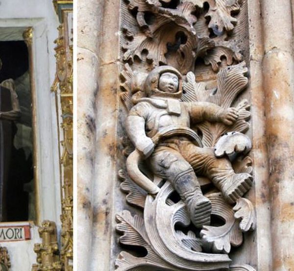 Ceea ce este interesant cu privire la această catedrală este faptul că printre sculpturile de pe faţadă se regăsesc un râs, un taur, un rac şi un astronaut (care prezintă şi cizme, cască, un aparat pentru respirat poziţionat pe spatele său cu tuburi ataşate pe partea din faţă a costumului). Fotografii ale acestui astronaut au circulat în mediul online timp de câţiva ani şi au iscat ample controverse.