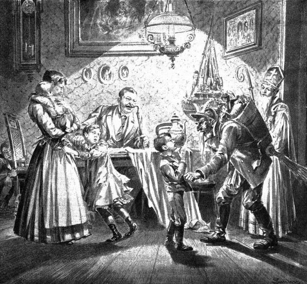 Krampus, alături de Sf. Nicolae, într-o casă vieneză, în anul 1896 / Sursa: The Vintage News