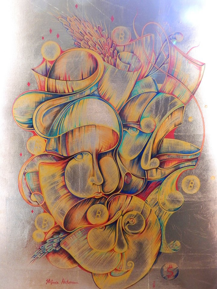 Tabloul „Cryptsy – Cryptocurrency Market” este realizat în ulei şi foiţă de aur pe pânză, la o dimensiune de 50×70 de centimetri, a devenit în ultimii ani o imagine reprezentativă în domeniul cryptoartei, alături de o altă pictură a Ştefaniei, intitulată chiar „Bitcoin”.