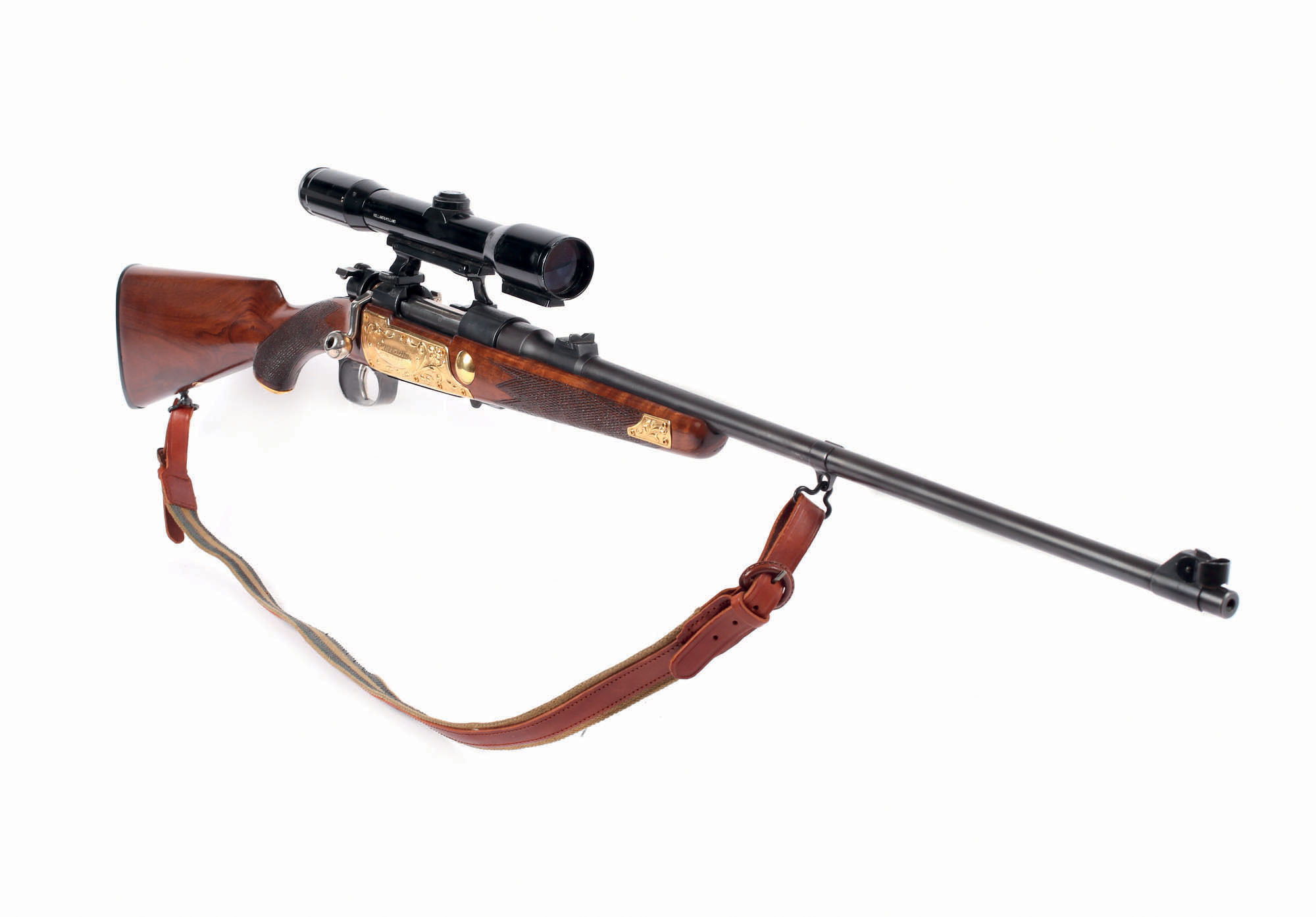 Puşca, având seria 505, este o armă de vânătoare funcţională, ce a fost comandată cu talpă din os, lunetă Zeiss şi ornamente ovale, din aur, cu cifra Regelui şi coroana regală.