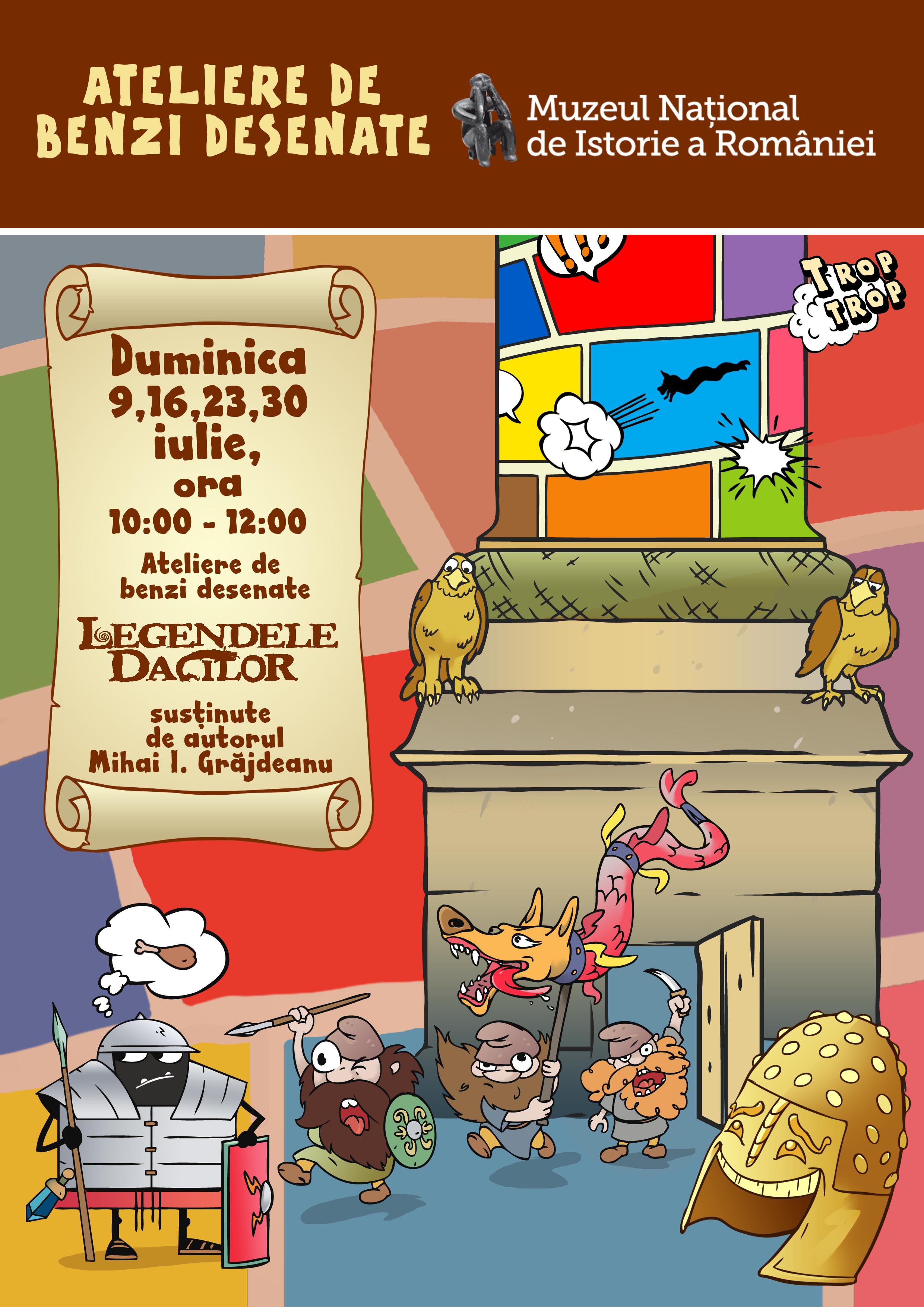 Muzeul Naţional de Istorie a României (MNIR), în parteneriat cu Asociaţia Mioritics, desfăşoară în următoarea perioadă o serie de ateliere educative şi de creaţie. Intitulate „Legendele dacilor”, atelierele de benzi desenate vor avea loc în luna iulie, în zilele de duminică, la sediul muzeului din Calea Victoriei nr. 12, Bucureşti.