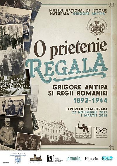 Cu ocazia aniversării a 150 ani de la naşterea lui Grigore Antipa, Muzeul Naţional de Istorie Naturală ”Grigore Antipa” invită bucureştenii (ş nu numai) să ia parte la expoziţia „O Prietenie Regală: Grigore Antipa şi Regii României 1892-1944”, un eveniment în cadrul căruia e transpusă în imagini prietenia dintre membrii Casei Regale a României şi celebrul om de ştiinţă.