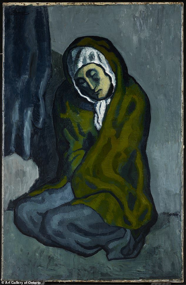 La Misereuse Accroupie este o operă ce face parte din Perioada Albastră a pictorului, moment în care Picasso a utilizat mult culoarea albastru şi verde. Atunci când Galeriile de Artă din Onatario au primit tabloul au observat o textură neobişnuită sub acesta, fapt ce sugera existenţa unei compoziţii diferite sub principala pictură.
