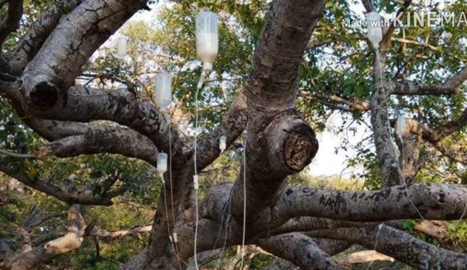 Un copac sacru cu o vechime de peste 700 de ani, salvat cu ajutorul a sute de perfuzii – VIDEO