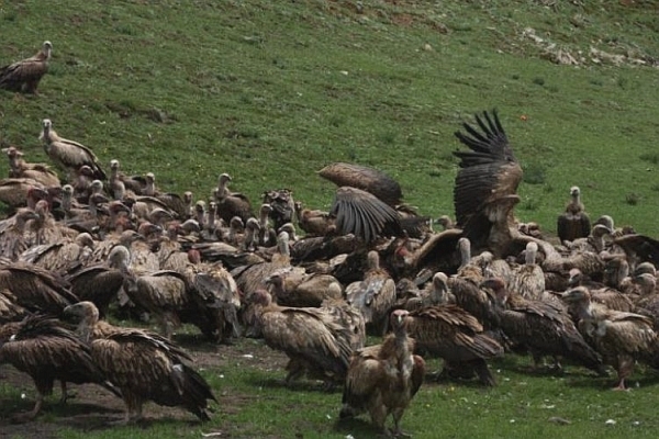 Un ritual funerar ciudat, contemporan, este, „înmormântarea” tibetană cerească. Acesta presupune ca trupul să fie tăiat în bucăţele mici, iar oasele sfărâmate pentru ca apoi să fie amestecate cu carnea mărunţită, nişte orz şi grăsime de iac, preparându-se astfel o „gustare” pentru vulturi. Din moment ce 80% din tibetani aleg să îşi găsească sfârşitul mărunţiţi şi agăţaţi pe o stâncă, în Asia există peste 1.000 de astfel de locuri.