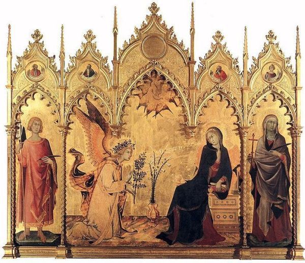 Primele imagini artistice ale lecturii silenţioase, interiorizate, apar sub motivul „Bunei Vestiri”. Reprezentări dictate de textele biblice o întruchipează pe Fecioara Maria primind vestea zămislirii de la Arhanghelul Gavril. Ea este aşezată pe un jilţ şi ţine o carte în mână. La apariţia solului, ea pare a fi fost întreruptă din citit: păstrează cartea în mâna stânga şi marchează pagina unde a rămas cu degetul mare. De aici înainte, toate reprezentările acestei scene o vor prezenta pe Fecioară citind singură.