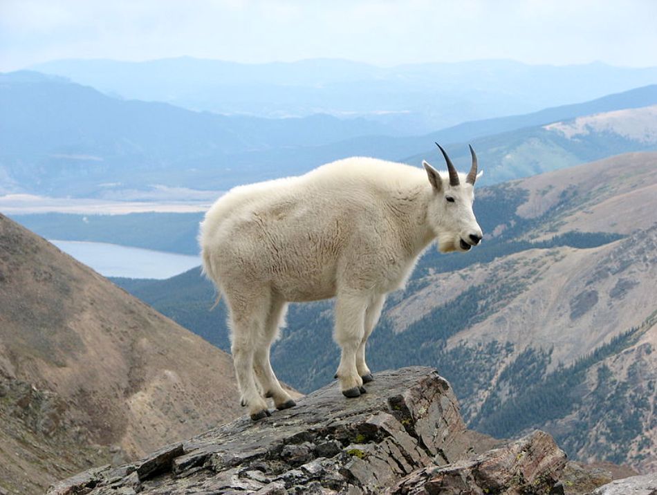 Capra de munte (Oreamnos americanus) trăieşte în Munţii Stâncoşi şi Masivul Cascade, din partea vestică a Americii de Nord. Animal de talie mare, impunător, cu blana albă ca neaua, este o prezenţă impresionantă în mijlocul peisajului sălbatic şi pietros al munţilor şi impresionează încă şi mai mult atunci când este văzut în mişcare: se caţără cu o agilitate acrobatică pe stânci abrupte, părând gata să se prăbuşească în prăpastie la fiecare pas, dar menţinându-şi miraculos echilibrul şi ajungând pe nişte ţancuri inaccesibile, unde părea imposibil să urce.