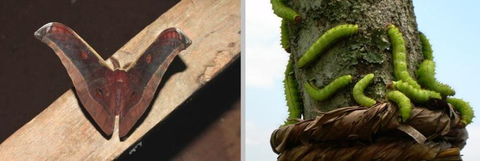 Alteori, fluturii sunt ţinuţi în crescătorii şi hrăniţi cu frunze culese, după metoda conscrată de secole. De la specia Samia cynthia (prima fotografie de mai jos), care se hrăneşte predominant cu ricin, se obţine în o mătase numită eri, iar de la fluturele Antheraea assamensis (a doua fotografie), mătasea muga.