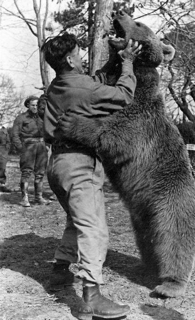 A învăţat să se lupte cu prietenii săi umani şi îşi doza întotdeauna forţa când se lupta în joacă cu oamenii. Spre amuzamentul tuturor, a învăţat rapid să salute cu o labă, ori de câte ori întâlnea câte un soldat sau ofiţer care-i vorbea sau îl mângâia.