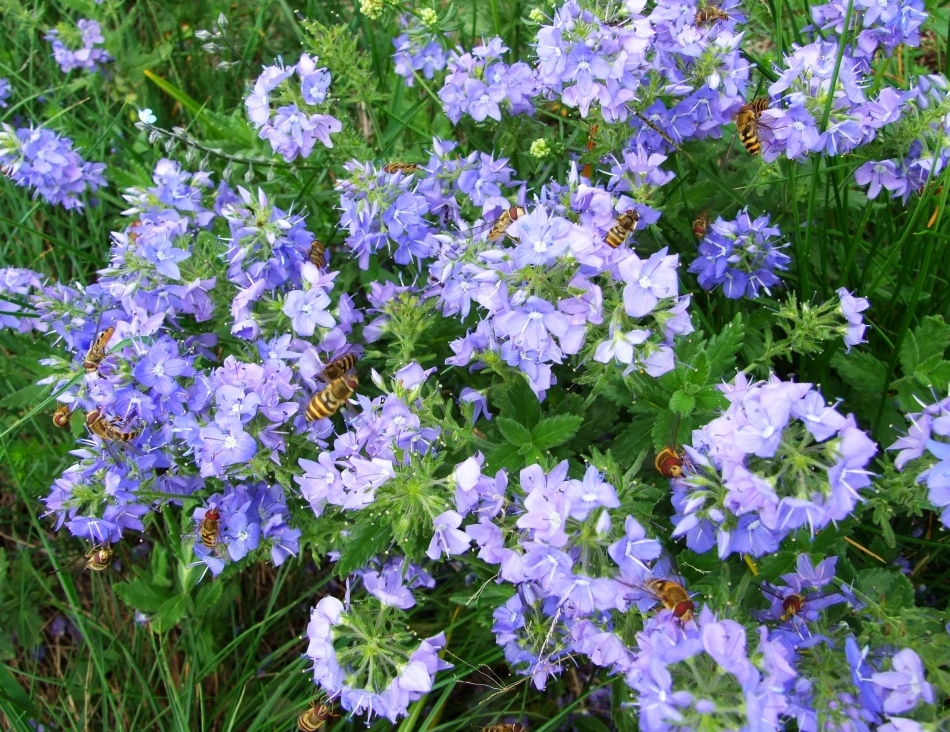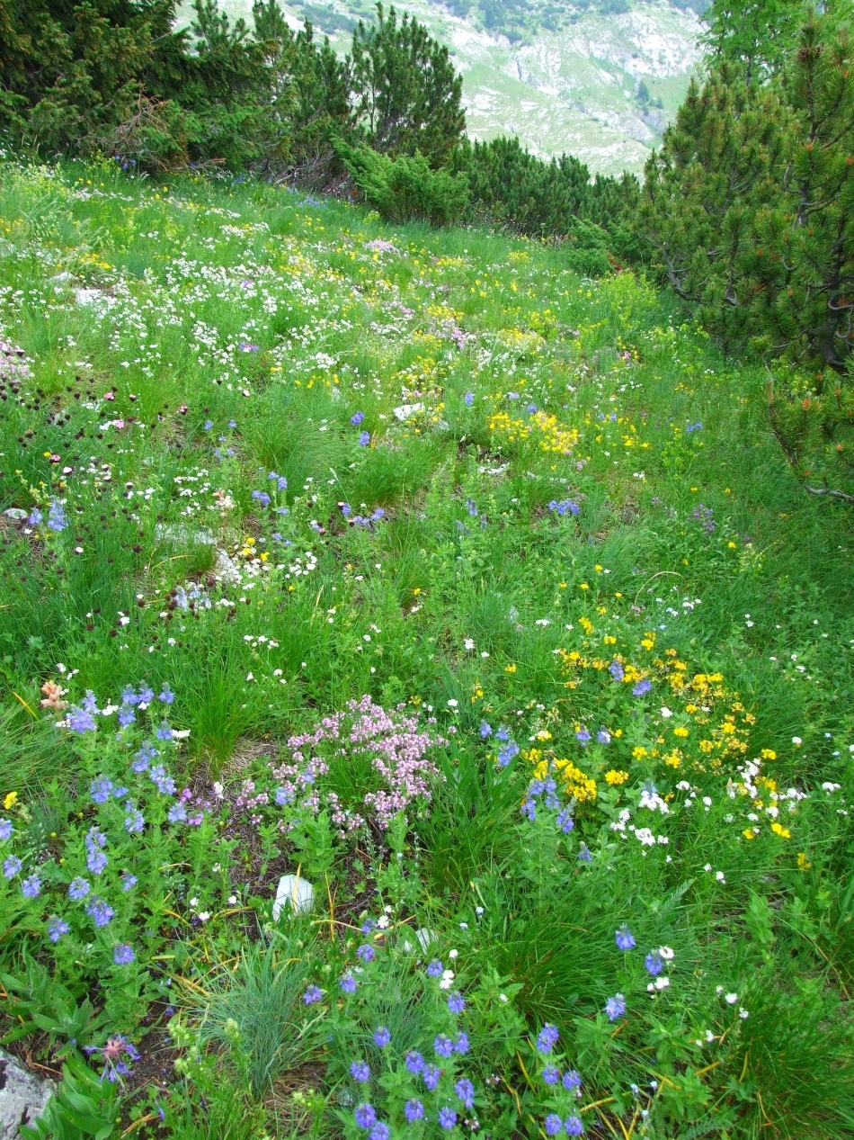 Cromatica pajiştilor, diversă şi intensă, se supune de bună voie capriciilor Naturii, un decorator cu fantezie fără limite. Verdele ierbii şi al jnepenişurilor este fundalul pe care culorile se amestecă după reguli neştiute. Stejărelul, cicoarea, nu-mă-uita –ul, şopârliţa de munte, omagul şi genţiana au provocat la întrecere albastrul cerului, în timp ce movul s-a împărţit toporaşilor şi clopoţeilor.