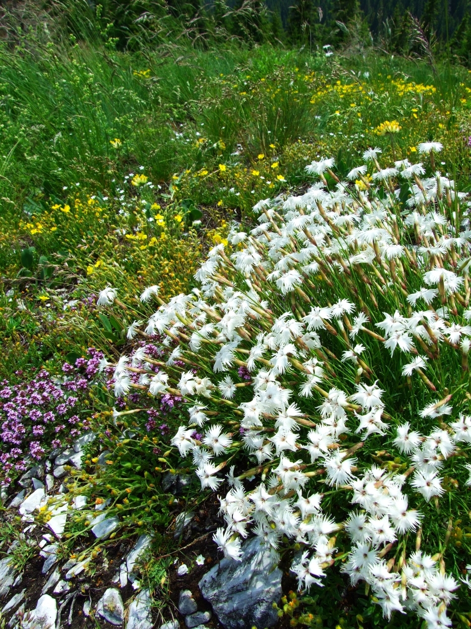 Şopârliţa albă, guşa porumbelului, stirigoaia, garofiţa de stâncă, stupiniţa, clopoţelul, arginţica, laptele stâncii şi guşa porumbelului au rezervat petalelor albul cel mai curat.