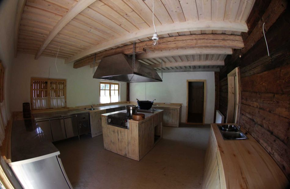 Fiecare structură provine din şuri vechi, care au fost dezasamblate şi reasamblate pe noua locaţie, mai puţin structura octogon, care pentru a putea fi ridicată au fost nevoie de 4 şuri vechi.