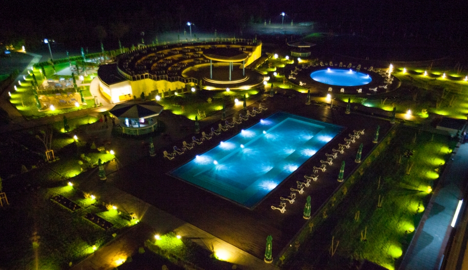 Suprafaţa totală a complexului este de 72.000 de metri pătraţi şi include 3 tronsoane din cele 7 proiectate, piscine exterioare pentru adulţi şi copii, restaurante, baruri, cluburi, zonă dedicată pentru copii şi un teatru de vară de tip amfiteatru.