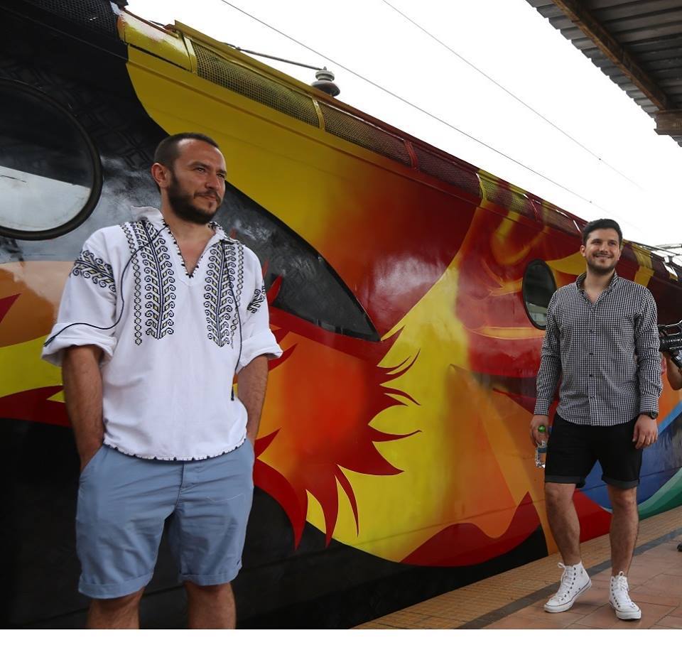Fraţii Cristian Scutaru şi Răzvan Scutaru, cei doi artişti care au transformat locomotiva în exponat de artă urbană neconvenţională au săvârşit opera în 276 ore de lucru şi au folosit peste 300 de litri de vopsea, lac şi diluanţi.