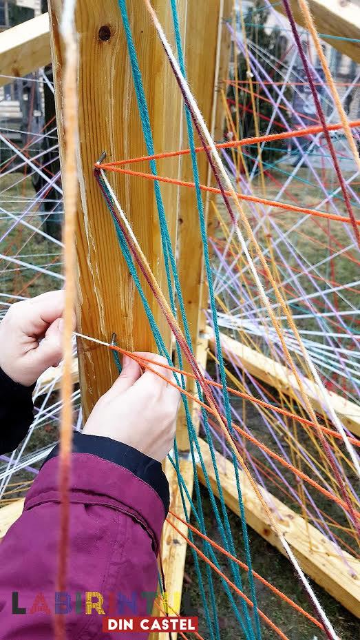 “La realizarea şi montarea ansamblului- Labirintul din Castel- au lucrat peste 20 de tineri, s-au folosit zece kilometri de aţă colorată, aproape doi metri cubi de lemn şi peste 1.500 de cuie. Dimensiunile instalaţiei o fac să fie în topul celor mai mari instalaţii de string art din România: structura măsoară 25 de metri pătraţi, iar înălţimea atinge, în cel mai înalt punct, şase metri”, se arată într-un comunicat de presă.