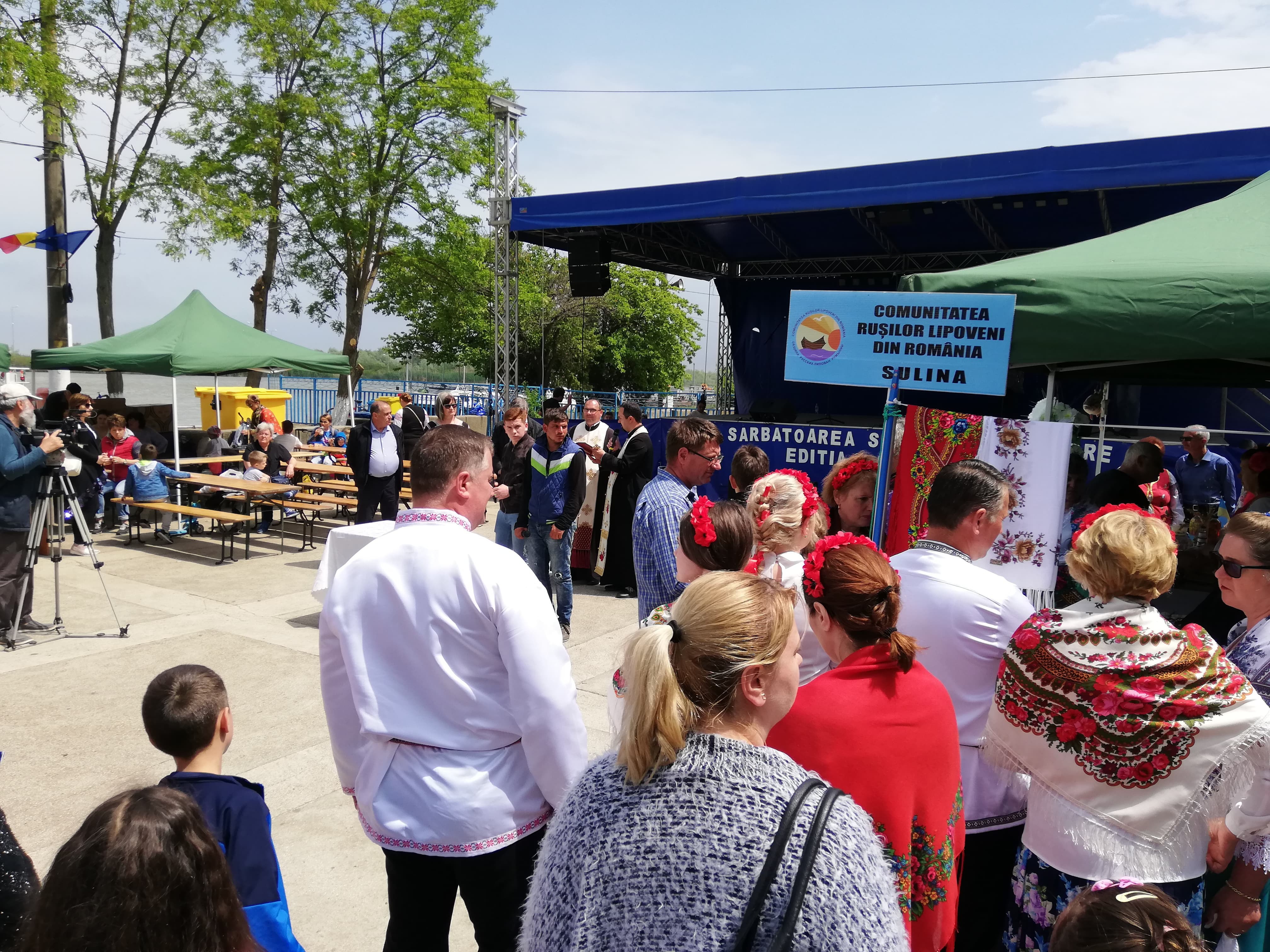 În timp ce în cimitir aromele ridicate din cazanele de borş şi fasole cu ciolan se amestecau cu fumul de tămâie, pe faleza oraşului se dădea startul Sărbătorii Scrumbiei Albastre, cu muzicieni din zonă, costume tradiţionale lipoveneşti, româneşti şi greceşti purtate cu fală de tineri şi bătrâni, cântece în rusă, acorduri greceşti şi sunete de grătar.
