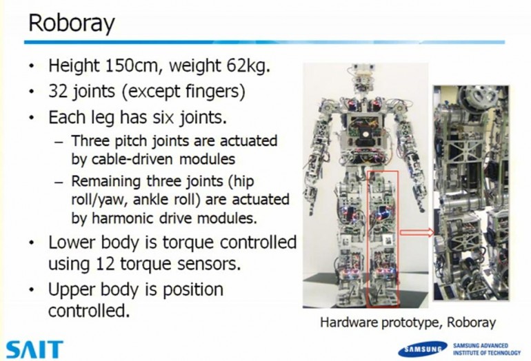 Roboray este pe cale să se alăture listei de roboţi capabili să alerge, însă până atunci, maşina cu o înălţime de 150 cm şi 62 de kg este un adevărat robot umanoid cu 32 de încheieturi (degetele nu sunt include). În prezent, oamenii de ştiinţă de la Samsung lucrează la dezvoltarea unor programe de recunoaştere facială şi verbală care urmează să fie integrat în noul Roboray.