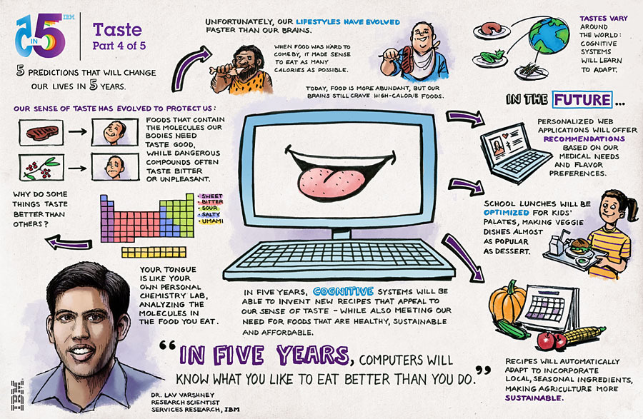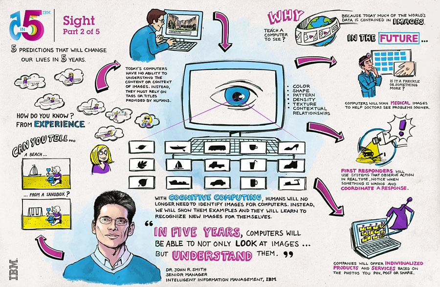 Specialiştii IBM au dat publicităţii lista „5 in 5”, care prevede că ăn anul 2018 vom avea parte de senzori mult mai avansaţi decât cei existenţi astăzi, ce vor avea capacitatea de a înţelege atingere, vederea, auzul, gustul şi mirosul aproape la fel de bine ca oamenii.