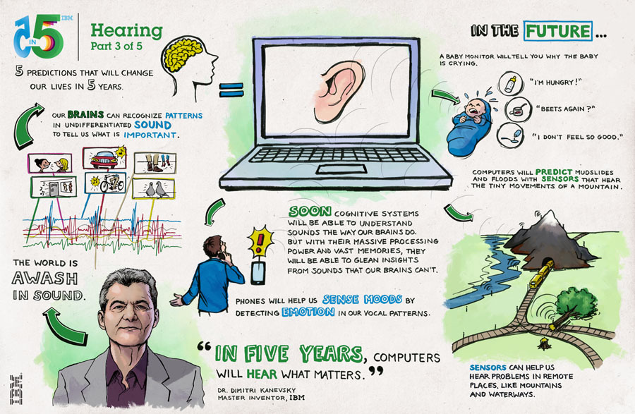 În fiecare an, IBM apelează la cei mai de seamă cercetători care lucrează în cadrul companiei pentru a identifica cele 5 tehnologii care vor deveni populare 5 ani mai târziu şi care vor avea un impact semnificativ asupra omenirii.
