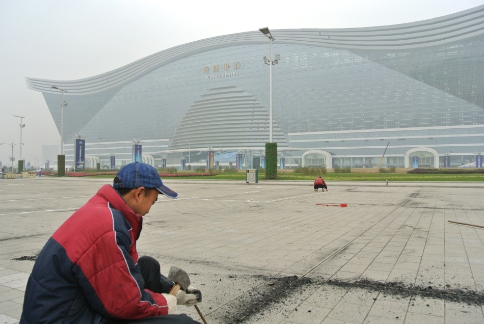 Dezvoltatorii celei mai mari clădiri din lune, China Exhibition and Travel Group, descriu Chengdu drept „un oraş modern de clasă mondială, de o frumuseţe idilică”, iar despre Global Centre, în ale cărui restaurante se vor servi „cele mai rare specii de peşti oceanici”, oficialii afirmă că „va aduce în mintea oamenilor scene paradisiace”.
