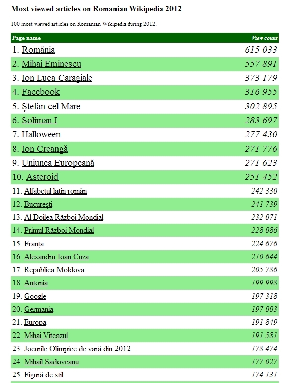 Clasamentul celor mai accesate articole pe Wikipedia în limba română