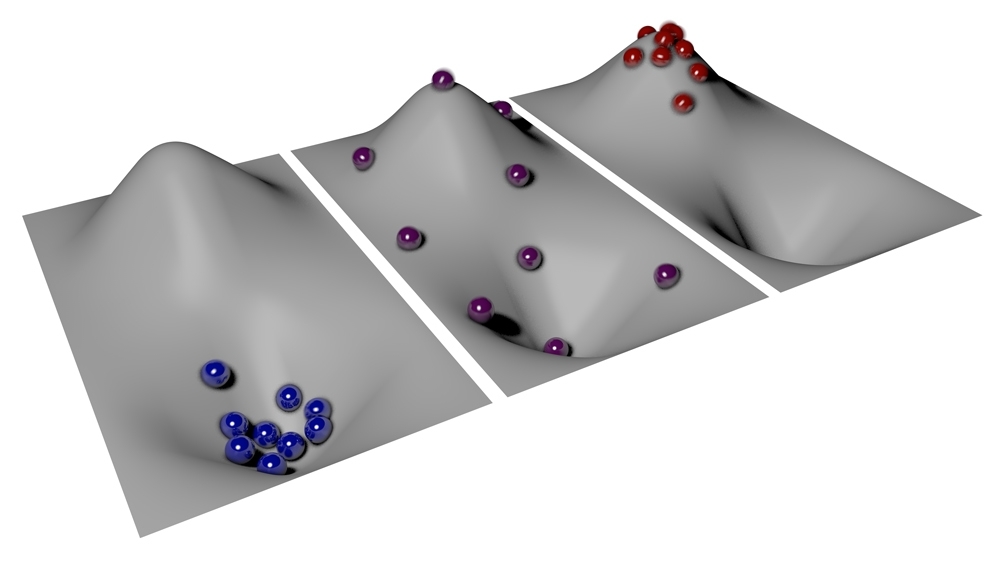 Temperatura depinde de cât de mult se deplasează atomii – câtă energie cinetică au. Reţeaua de fascicule laser a creat milioane de puncte luminoase strălucitoare în care atomii se puteau mişca, dar în care energia lor cinetică era limitată.