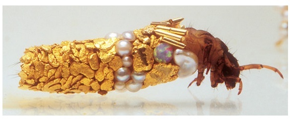 Profitând de această ocazie, artistul francez Hubert Duprat i-a transformat pe carabeţi (căci aşa se numesc larvele de trichoptere) în adevăraţi aritecţi-bijutieri moderni. Mai exact, el le-a pus la dispoziţie, în loc de nisip şi scoici, aur, perle şi pietre preţioase, permiţându-le să îşi creeze case-bijuterii.