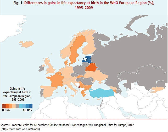 Ţările cu cea mai mare diferenţă între speranţa de viaţă la femei şi cea la bărbaţi sunt Belarus, Estonia, Kazakhstan, Lituania, Muntenegru, Rusia şi Ucraina.