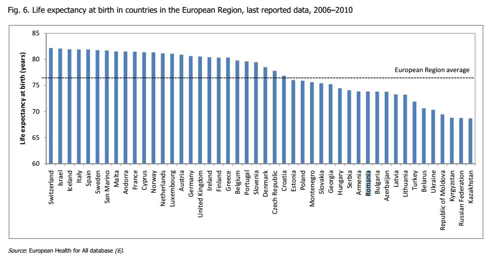 Distanţa dintre prima ţară din clasament în ceea ce priveşte speranţa de viaţă a bărbaţilor şi ultima ţară din clasament este de 17 ani. În rândul femeilor, diferenţa este de 12 ani.