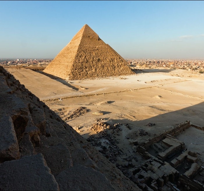 Ruşii au reuşit să evite paznicii ce protejau piramidele, permiţându-i fotografului Vitali Raskalov să realizeze câteva imagini spectaculoase de pe celebrul monument. Raskalov a surprins în fotografii deşertul din jurul platoului Giza şi Sfinxul, cadrele fiind realizate de pe vârful structurii înalte de 138 de metri.