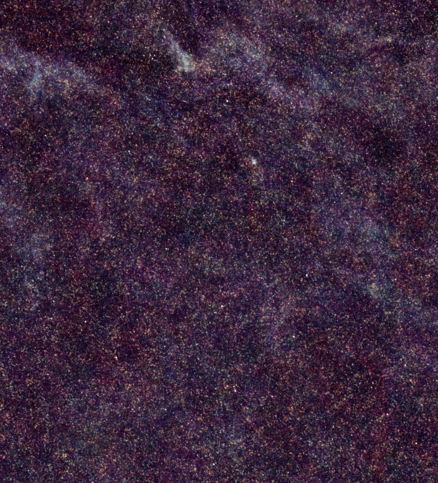 O porţiune din cer de 8 ori cât lăţimea Lunii. În imagine sunt surprinse 6.000 de galaxii, iar lumina unor stele ajunge la noi la câteva miliarde de ani de la emiterea ei