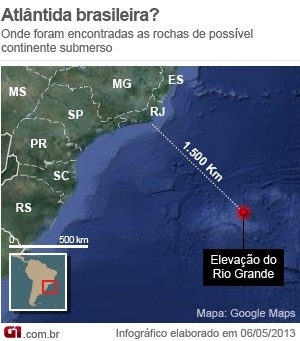 Geologii brazilieni au anunţat că au descoperit, la 1.500 de kilometri de Rio, o regiune ce ar putea fi o parte dintr-un continent ce s-a scufundat în ape pe măsură ce Africa şi America de Sud s-au despărţit acum 100 de milioane de ani, ducând la formarea Oceanului Atlantic.