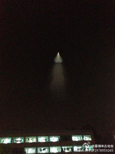 Oamenii din provincia chineză Hubei au anunţat că au văzut un obiect în formă de V ridicându-se spre cer la ora 9 seara în cursul zilei de luni.