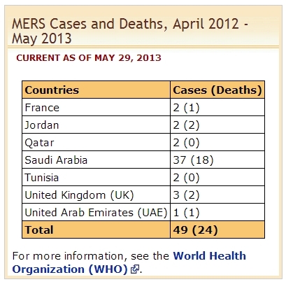 Virusul, ce este cunoscut şi sub numele MERS (Middle Eastern Respiratory Syndrome), a omorât până acum 24 de persoane şi a infectat cel puţin 49 de persoane din numeroase ţări. Coronavirusul a fost detectat pentru prima dată în Arabia Saudită în noiembrie 2012. Numele de „coronavirus” vine de la forma moleculară a acestui tip de virus, ce include şi virusul SARS.