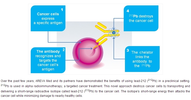 În paralel, Areva a lansat operaţiunile de construire a unui laborator care va produce Pb 212, o premieră mondială, la Bessines-sur-Gartempe, în regiunea franceză Limousin, care va începe să funcţioneze la sfârşitul anului 2013 pentru a extrage nanograme cu acest izotop din câteva tone de thoriu.