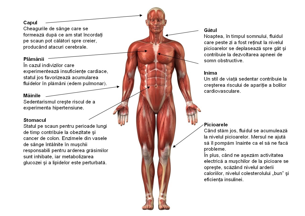 Mai mult, studiile au indicat că statul pe scaun pentru perioade lungi de timp creşte riscul de deces provocat de boli cardiovasculare şi cancer.