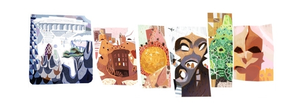 Astfel, logoul de marţi al Google prezintă parcul Guell, interiorul de forma scoicii din Casa Mila, un balcon al Casei Battlo, un horn verde al Palau Guell şi soldaţi romani mascaţi care apar în arhitectura catedralei Sagrada Familia.